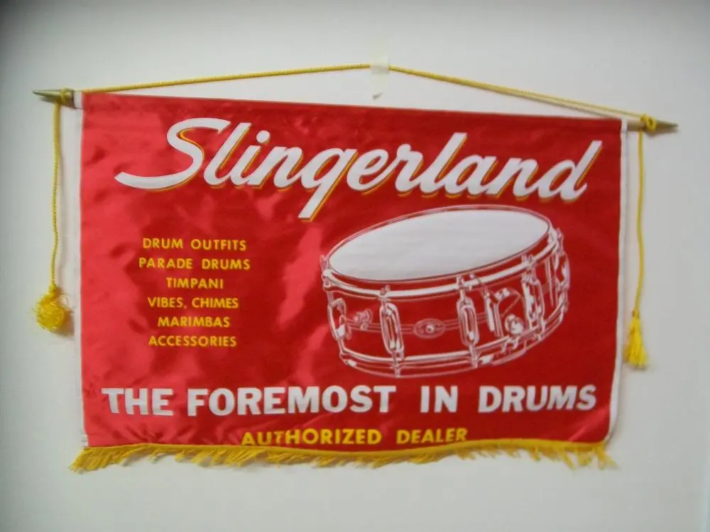 vintage SLINGERLAND RED SATIN DEALER BANNER!