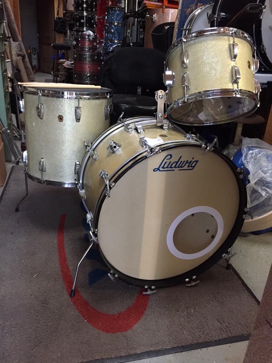I'm purchasing a '65 Ludwig super classic kit in (definitely aged and gigged) silver sparkle. Shells only. 22/13/16. It's past ginger ale. It's more like an egg nog sparkle these days.