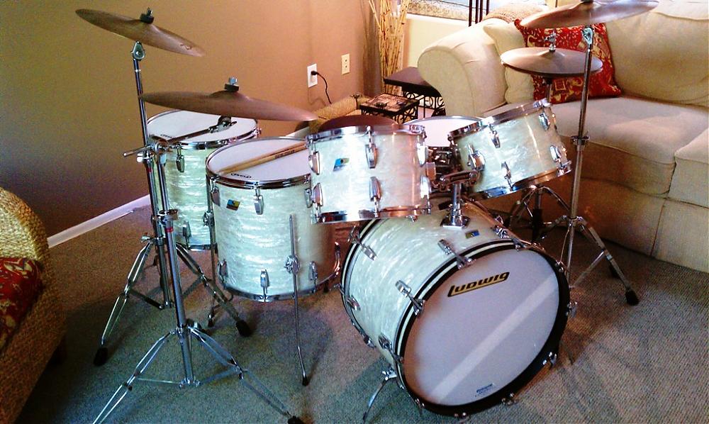 Wow! I am overwhelmed by the kind words. This is the third kit in the last year I have carefully restored as I have taken some time off to enjoy my old love. Our family has been in the percussion world for well over 100 years combined and we love playing, collecting and restoring drums. I think this one is a keeper as my family gave me the similar set when I was about six and I enjoyed until my early 20's. I have watched these forums for sometime and finally decided to post one of our vintage sets. Hopefully we can get to the Chicago show this year and if any can suggest some Southern California events that would be great. My dad who is in drummers heaven with Buddy right now is looking down right now and smiling.