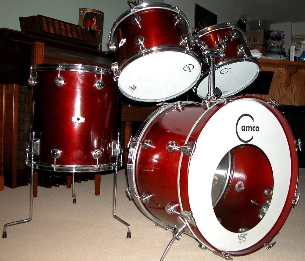 1970's Camco Drumset 14x22 bass drum, 16x16 floor tom, 9x13 tom, 8x12 tom.