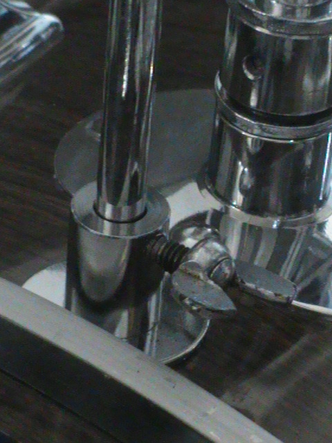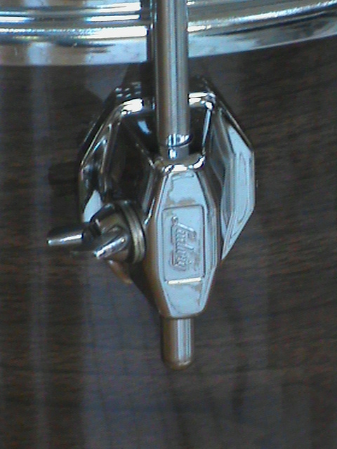 Just before starting to examine, clean and polish today, I was looking over ebay for newly listed items and saw a ROGERS Swivomatic Era Cymbal Arm Extension. Something clicked in my head. In an earlier post I had mentioned the oddities on the base drum (note 1st picture) and I realized I could try a Samson II cymbal tilter rod assembly in the mount slot. Eureka ! Its a perfect fit. Now I have the perfect location for a small splash which is most likely the original purpose. This discovery has made my day.