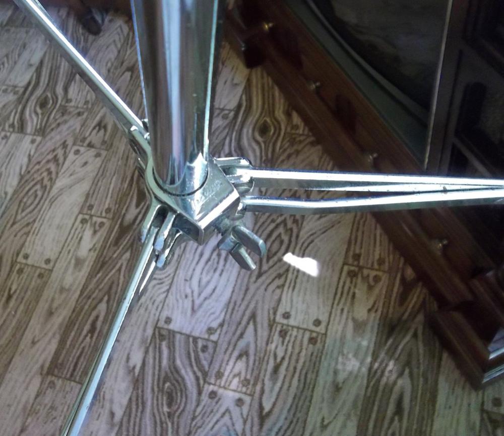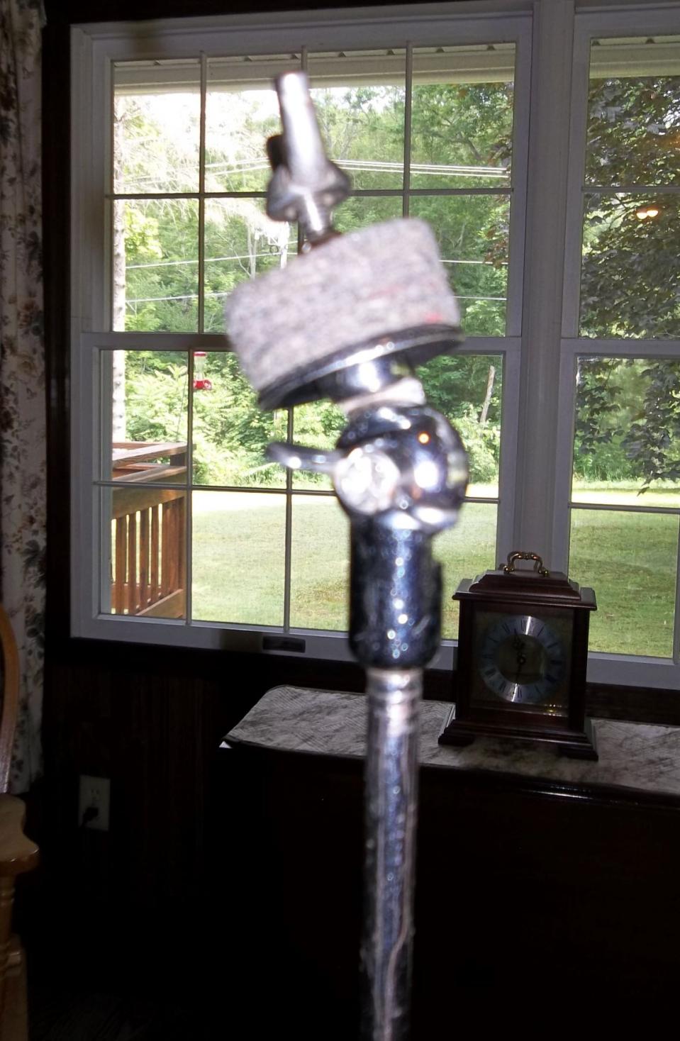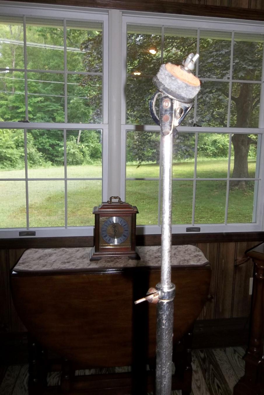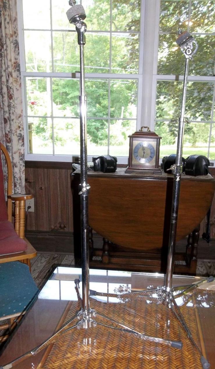 One of the bases has the Ludwig name imprinted on the locking collar and can be seen in one of the pictures. Their condition are good. Both top sections are the type that the tightening screw tightens directly on the rod which causes number of "chew" marks.