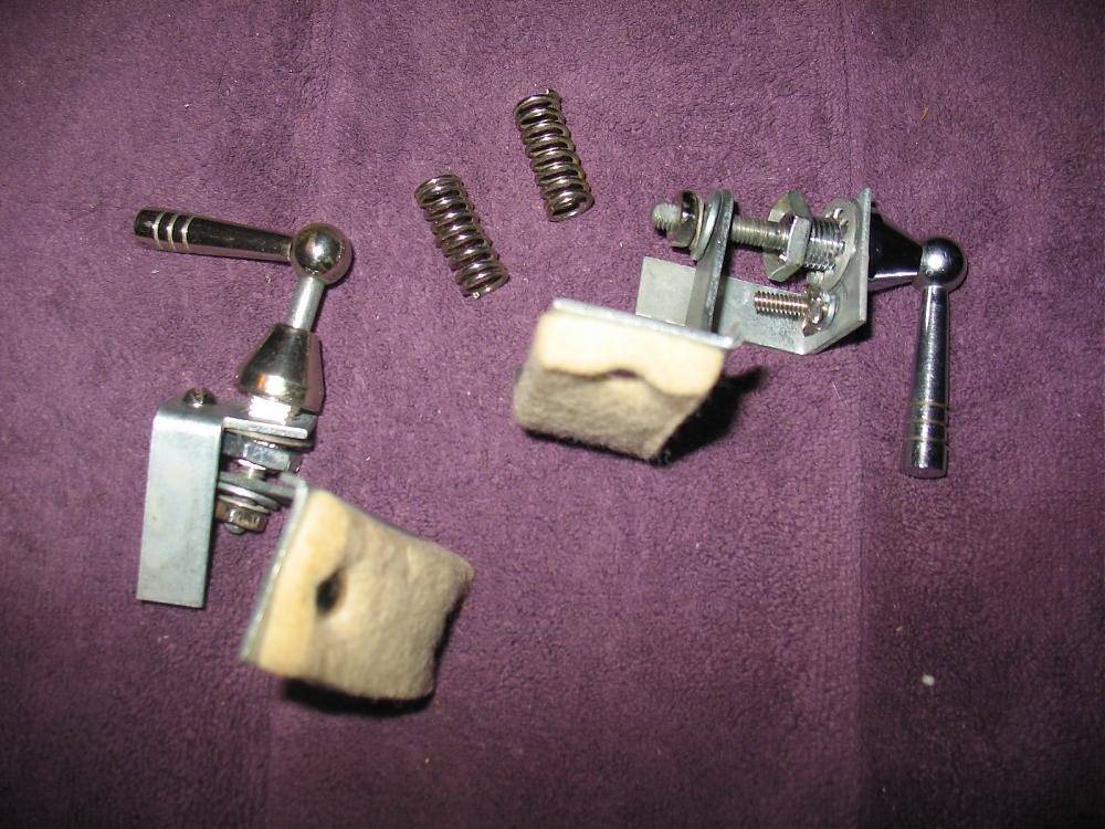 They are nicely chromed and complete in terms of parts. The small lock washers are not original, however, they are new. These came off of 60's era Clubdate toms (a 12 and a 13) but they were not from the same set. The discriminating eye will notice a slight difference in the patina, but they would pass as matched for two shell mounted toms. Overall, would be a nice enhancement to your vintage project. I have 2. Will sell separately for $40.00 each, or both for $75.00. buyer covers actual shipping from 10990.