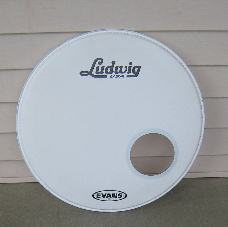 20" coated white Evans EQ3 ported resonant head. It has the Ludwig logo, which looks pretty cool, but it will peel off pretty easily if you want.