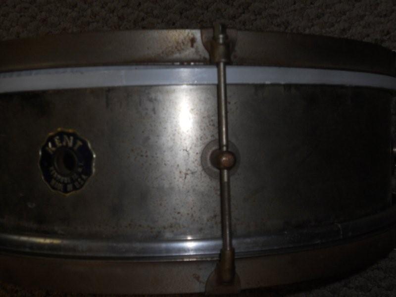 I bought a snare drum today at a yard sale for $1 which appears to be a 50s Kent. It's all metal and includes all of it's hardware with the exception of a single lug. I looked for a while for parts but it is clear that it will be quite difficult to find one. If you have one or know where to look for one, please reply or email me. Any information is greatly appreciated.