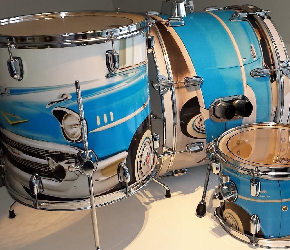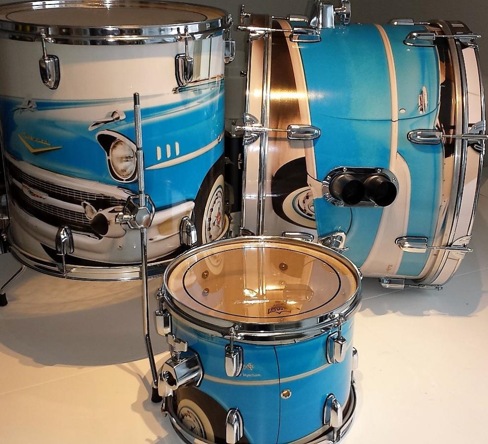 I'm having way too much fun coming up with new Classic Car inspired drum wrap finishes. :) This one even got hot-rodded exhaust pipes!