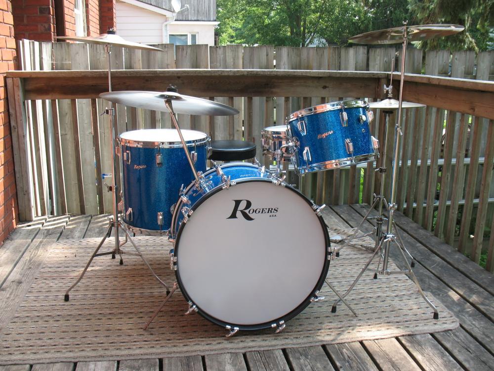 Picked this kit up awhile back. It was missing a few bits and pieces and in need of a good cleaning but over all it's in amazing condition. All flat grey interiors with Dayton tags 14x22, 9x13, 16x16. The snare and hardware didn't come with the kit but it did come with an extra 9x13 Fullerton tom.