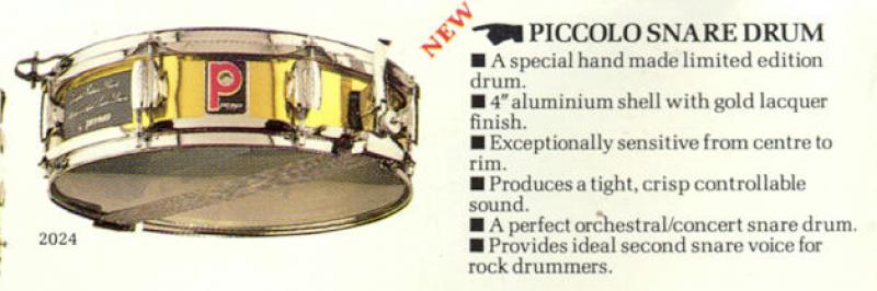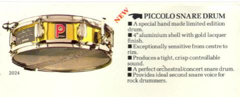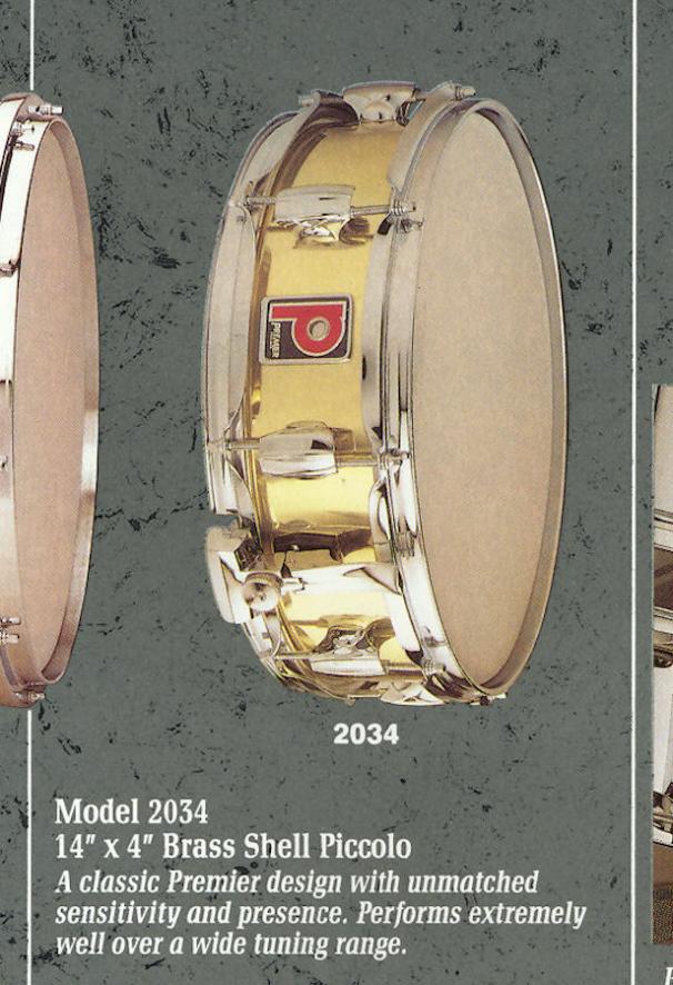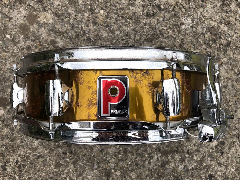 I just bought this Premier 14x4 snare for cheap as a restoration project. It's in pretty poor shape cosmetically but plays and sounds great. I've checked the old Premier catalogs and can't find the model number. It's an 80's lacquer coated metal snare with parallel strainer and triple flanged hopes. The closest I can see is either model 2034 which is a lacquer covered brass shell or model 2024 which is a lacquer covered aluminium shell. The thing is the shell is magnetic so probably not one of those. Any Premier enthusiasts know if they released either of those with a steel shell or some other alloy?