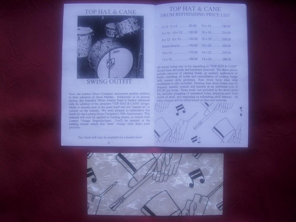 its a 2001 lawton price list and (from what i remember) a sample of the wrap my old boss todd got before the limited edition snares went into production.