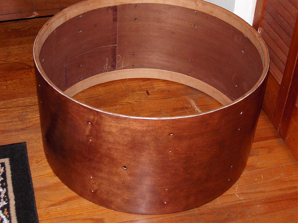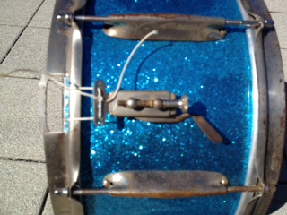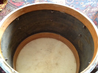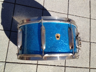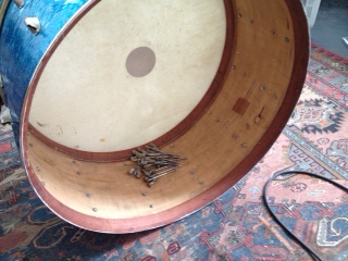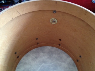 All the drums were recovered in Sparkle Brite covering, which will be removed promptly. I'm thinking I'll be stripping these down to bare wood and re-painting/lacquering.