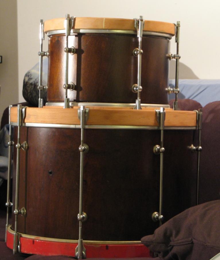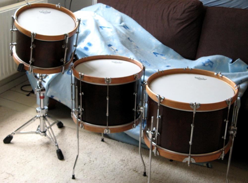 12, 14 and 16 inch toms finished. Sound very nice, warm and open. Reeeeeally long tones (I guess because of the very thin shells).
