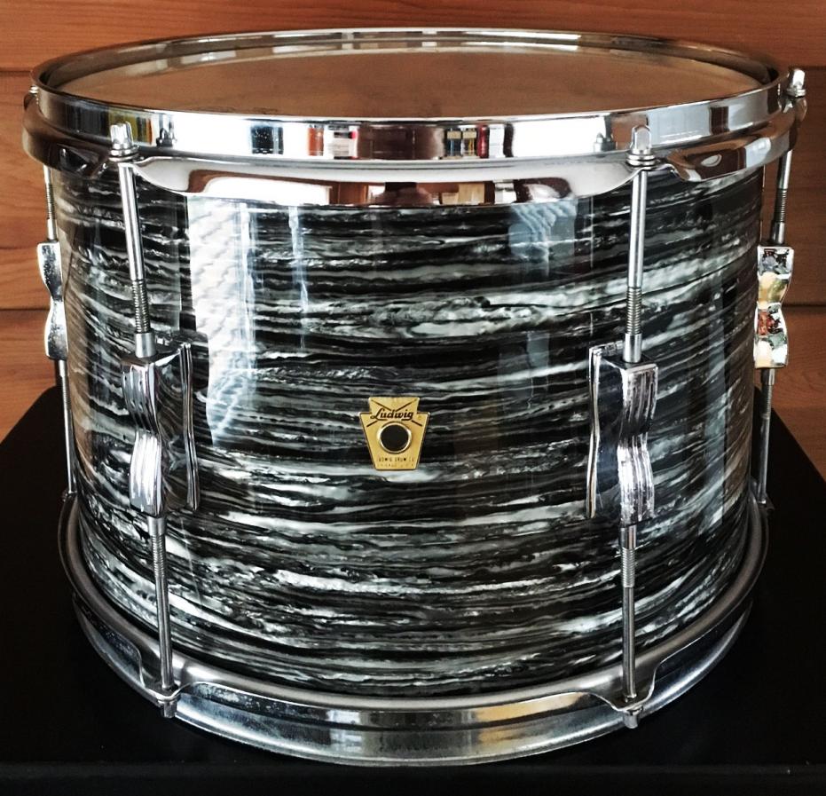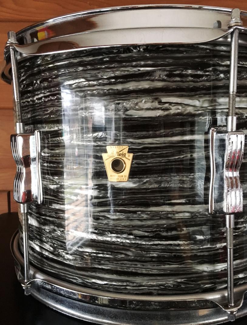 For sale is a great Vintage 1967 Ludwig 13" Club Date Tom in Oyster Black Pearl. Shell is in-round with nice original bearing edges. Chrome hardware with chrome over steel hoops have minor oxidation and pitting. Oyster Black Pearl wrap has some scuff and is tight and glossy. Keystone badge with serial 549498. Black date stamp of DEC 12 1967. A great drum to complete any kit!