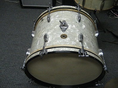 --The bass is a 1950's gretsch with all the original parts and orginal Singerland calf skin heads.
