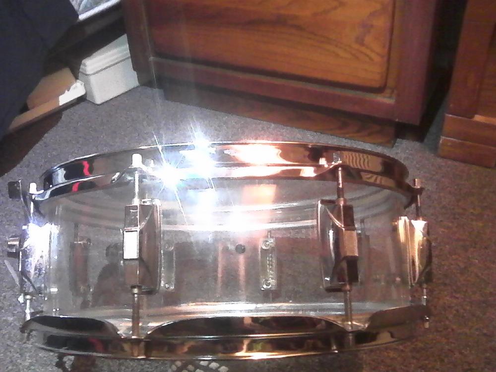 So I found this clear acrylic snare on ebay and pounced on it as the price was right. Got new Gibraltar rims, snares, new heads. I'm not sure as to who possibly made it though. It has a Made In Taiwan style strainer, but I don't recall any acrylic drums being made in Taiwan. I know obviously Ludwig,Slingerland,Tama,Pearl, Sonor and maybe one other, but this doesn't look to be any of those, nor a newer RCI shell with whatever hardware. I added the CB lugs as the one's it had were junk. It sounds great and I love it regardless of who made it. Just wondering if I can place it.