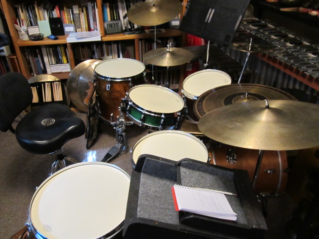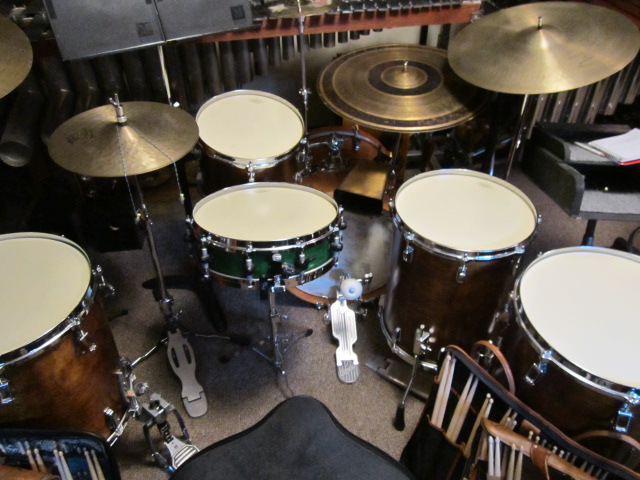 I couldn't figure out how to add photos to a discussion with Robyn ("Wiggle Woman") so I will post them here. My first set was a used Slingerland Radio King that my folks got me from a pawn shop. I used that for my short lived rock and roll days. The genesis of this set was built in 1979 when I worked at Winkler's Pro Drum Shop in Nashville. It has an 18" Yamaha floor tom converted to a bass drum, 8x12 Keller mounted tom, 14x14 Keller floor tom, and a Bison 4x14 snare. I added a Yamaha 16x16 foot tunable floor tom (it was a bear getting the wrap off) and just for fun found a second tunable floor tom that was cheap because it did not have the pedal mechanism. I made a pedal mechanism from a Yamaha high hat stand. Then just because I am an idiot with too much time on my hands, I added snares to the two tunable floor toms. I have a lot of fun with it and look forward to going to jazz jams and maybe even taking the extra toms. Thanks, Joe