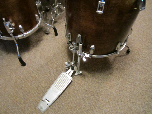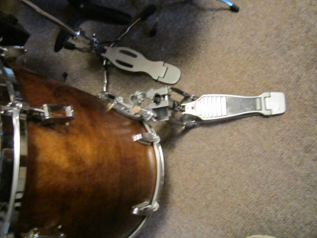 The Yamaha floor tom tuning mechanism is almost identical to some timpani mechanisms with a "spider" on the inside. I think the first example of this was Ludwig for Ray Bauduc (1930's?). It is on display at the Professional Drum Shop in Hollywood. Speaking of Hollywood, the Italian Miazzi (sp?) folks had one later on (60's?). The Yamaha dates from the late 1970's. The foot pedal attaches to the large horizontal bar in the center of the drum. Yamaha also had a little toe activated level on the side of the pedal that could be pivoted over the foot board to hold a certain pitch. I never had that piece. The high hat pedal I rigged actually travels higher and has a wider pitch bend. Hope this makes sense.