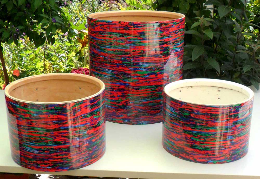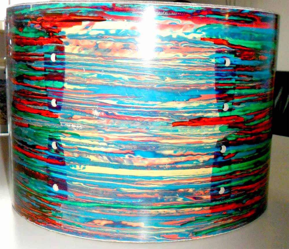 just finished a psychedelic red project. Got a psycho red kit from a guy playing it on a raft the last 40 years. Kit was in very bad constitution, unsteady fading on all drums. First tried to paint the missing colours, then I had an idea and did a recovering. Made my own psychedelic wrap, see the result in the pics. What do you say? Cheers Tom