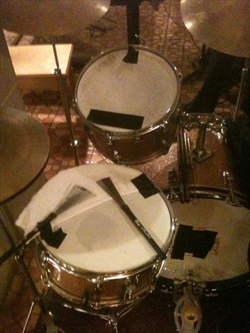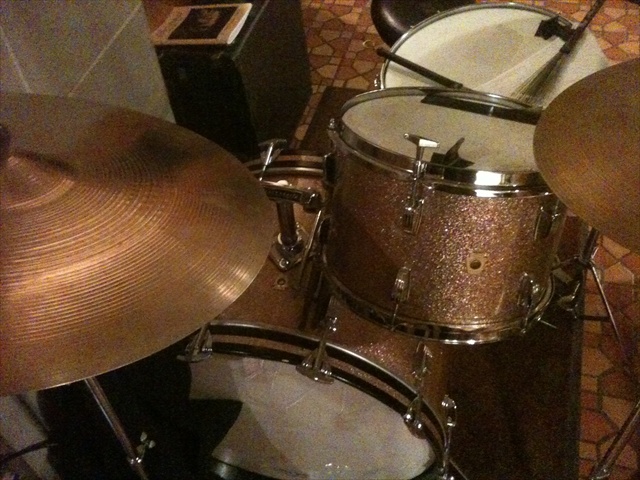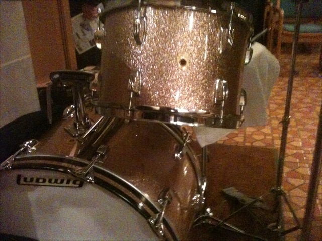 i was called at 3:00 to play at 5:30 mass tonight, 2 kits are in the middle of resto so had to pull out the big guns my 67 holly wood sans 2 toms new york style with a Ringo muffler was great well metered than i pulled out the circa 1920's silver brushes no pic sorry, and the real surprise a nos 18 in. A ride crash i bought at a pawn shop, played with piano and electric base...