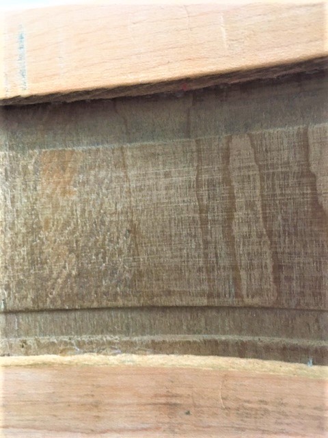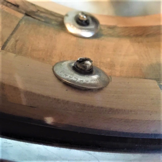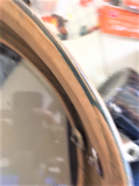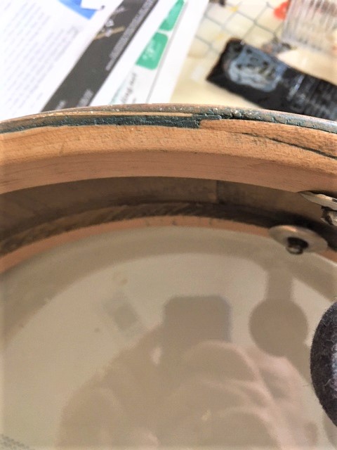 Need a picture of the bearing edges with hoop and head removed. Also another picture of the inner shell. It may just be the picture but the grain on the inside appears to be running in the wrong direction (looks vertical, should be horizontal). Drum has been re-wrapped and the factory would not have installed lug fasteners in that manner.