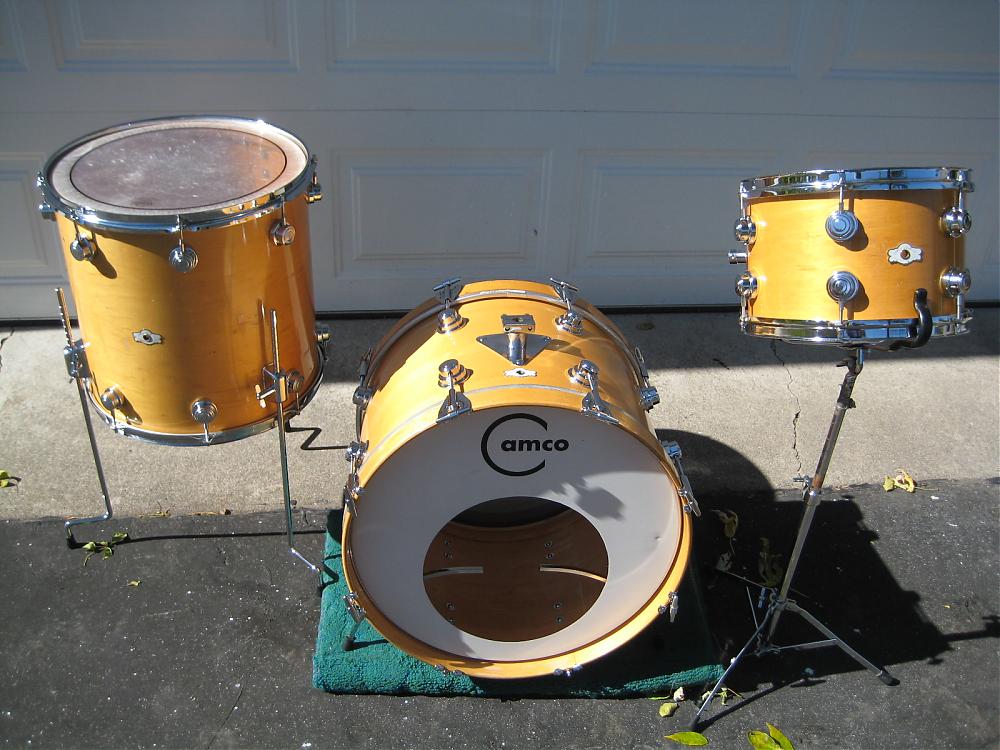 My latest rehab project. 12", 13", 16", and 20" LA Camco kit in natural maple finish. All orphans that were pieced together to come up with this kit. Still have a 14" floor on the way from forum member:antipodes(thanks) and with that it will be my killer gigging kit. Shown in 1 up and 1 down for lead photo but others below. This was a painstaking slow project but they surprisingly turned out to match each other. Buffed and polished all the shells, and tumbled and polished all the hardware. Stunning sounding kit. Will work on getting some better photos but for now enjoy, I know I am.