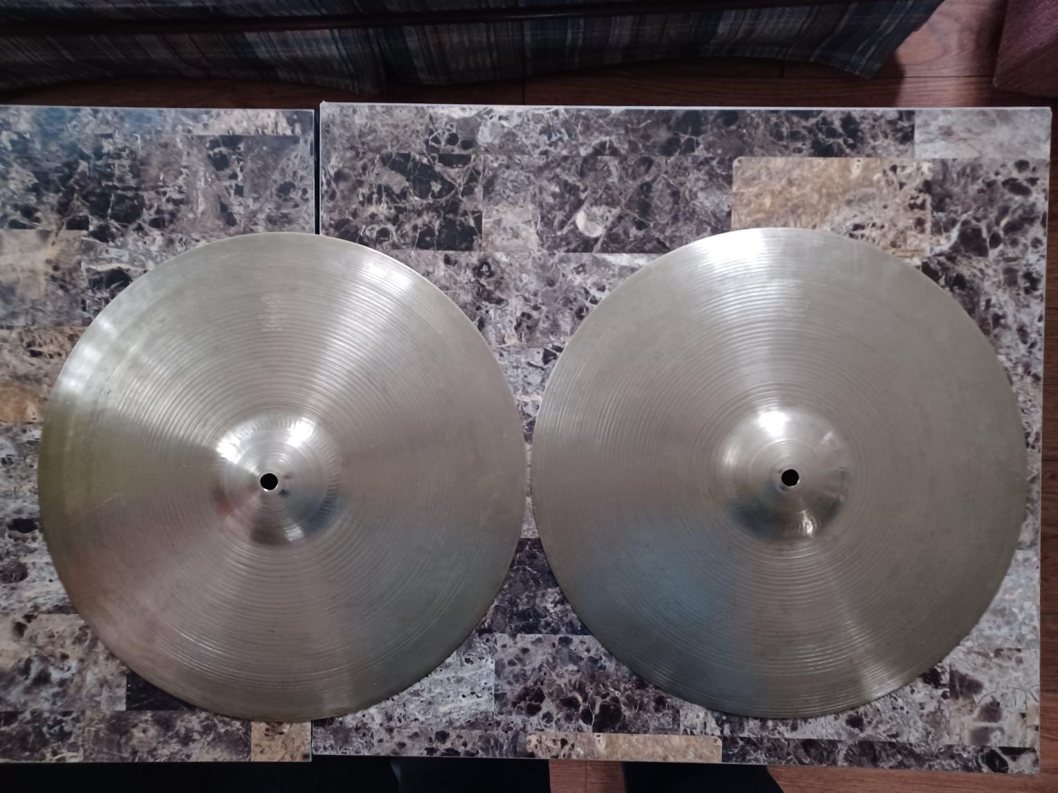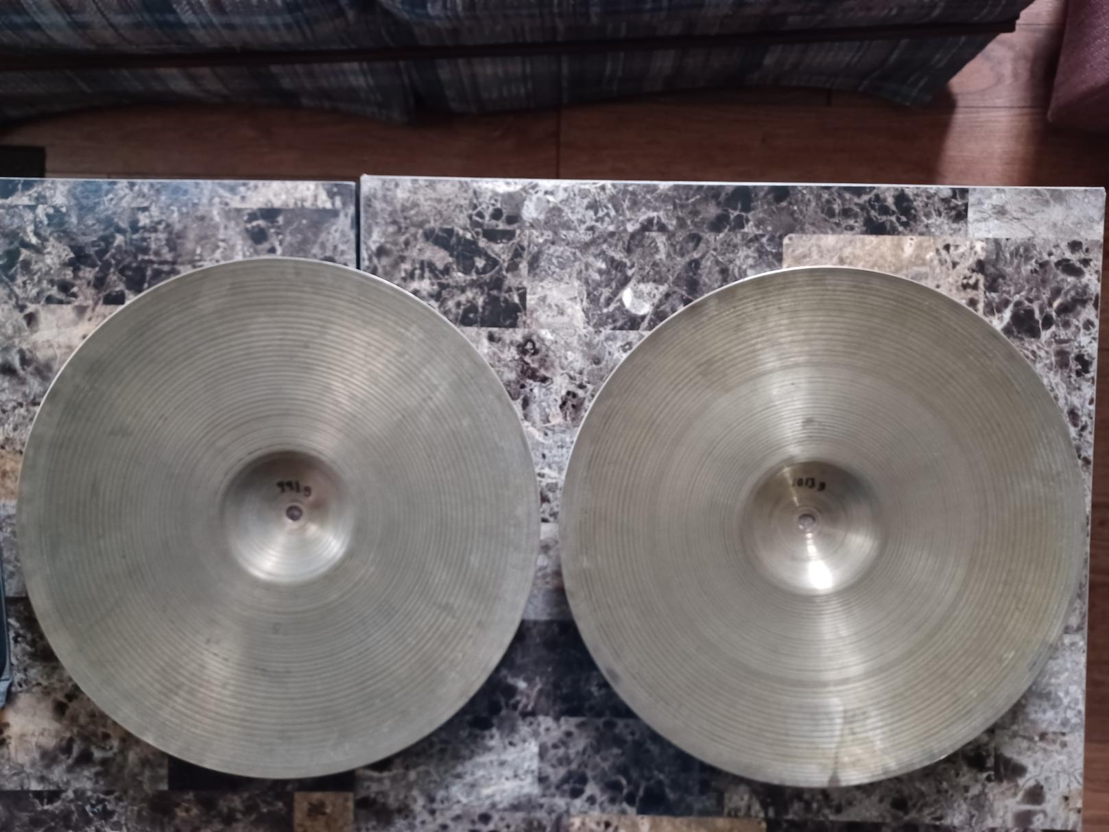 991g over 1013g. In good condition. Some staining and scratches. Bottom cymbal has some minor edge dings.