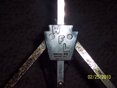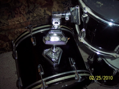Black 3 piece Ludwig drums 20, 12, 14 with old Wfl snare stand. B/O badge serial # 948772 leads me to believe this a 1978 kit. The interior of the shells are painted flat black. The snare I think is a Japenese type stencil maybe a crown as mentioned by one of the drum gurus from an earlier post. The high hat cymbals are very thin Ruether 14", one of the others is a Nuvader 15" and the last one I was unable to identify. All hard ware is in place, Black wrapped shells are tight very light rust here and there, nothing that couln't be refurbished by interested party. This kit is used but not abused. Any offers or advice as to what I might ask on e-bay or Craigslist would be very appreciated.