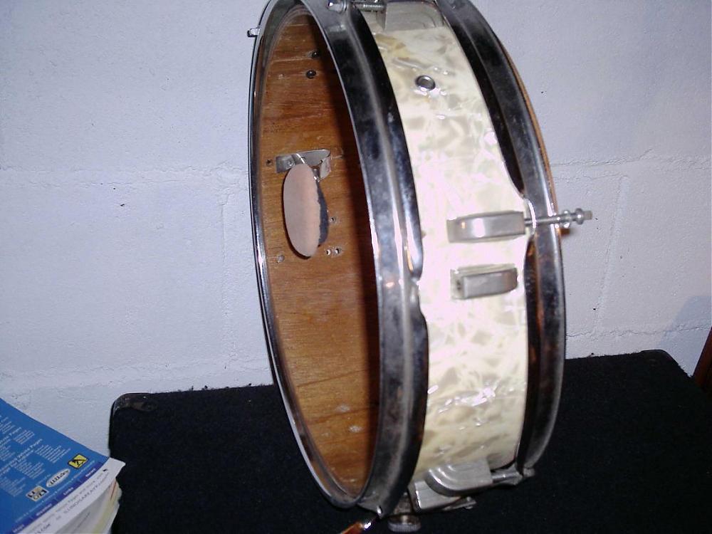 Those lugs came off this snare(!) Lotsa holes this one. I think someone sawed a floor tom and made a snare. ?