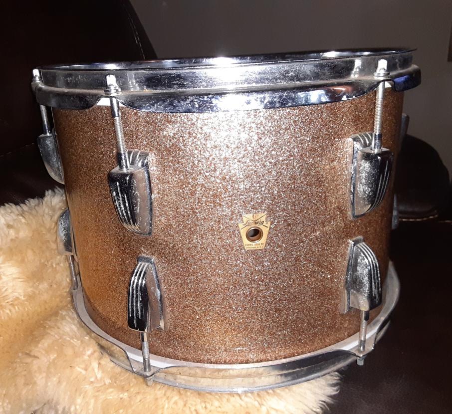 Here's a nice Ludwig 9x13 tom in a champagne sparkle finish. I don't know the exact year, but it has the keystone badge and is complete.