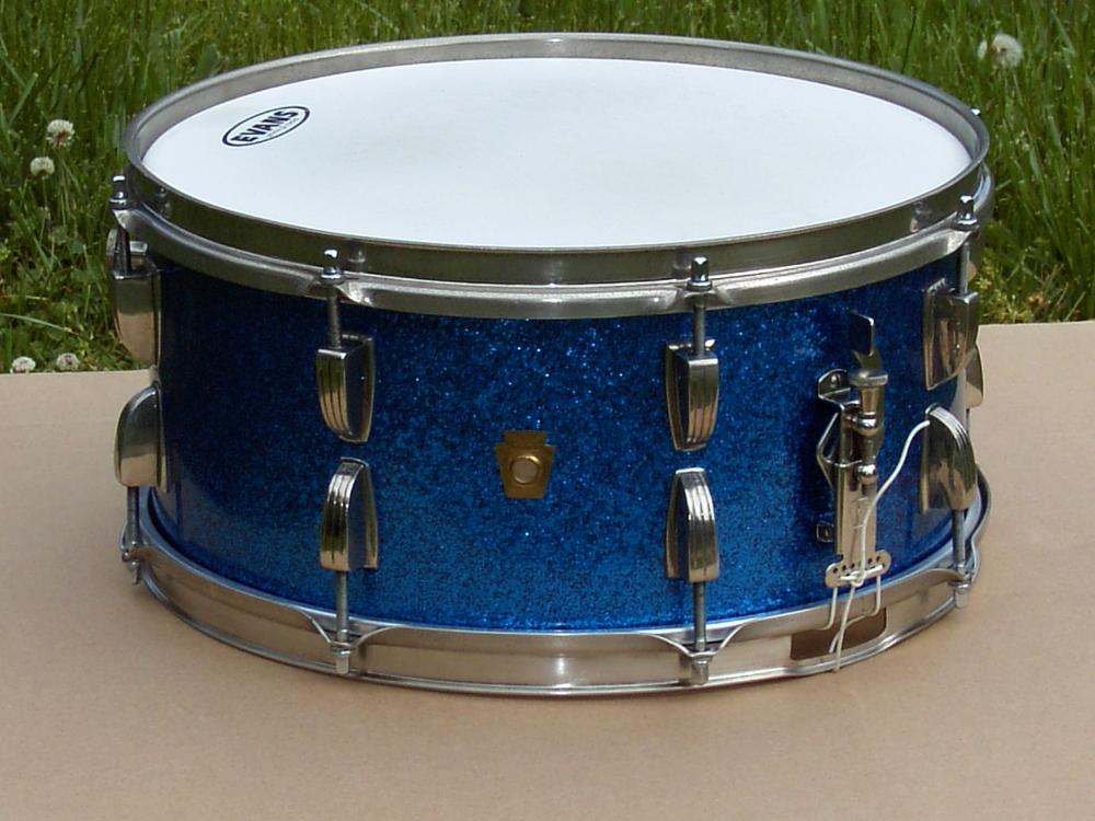 This drum is all original and in very good condition, bought from the original owner many years ago this is one of my favorite snare drums, I have the case, stand, practice pad and sticks. Ludwig pre serial number School festival 6 1/2x14" Blue Sparkle.