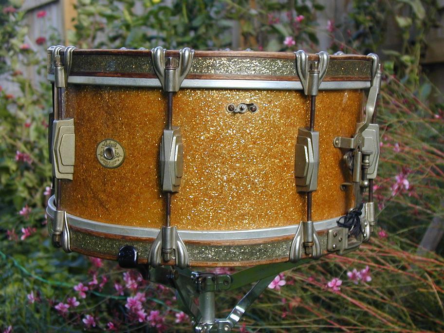 Ludwig offered wood hoops on many of their 10x14 marching snare drums.
