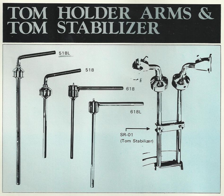 Each uses a different style tom holder. But you can see that even in the early 80's, Pearl still had quite a few of the old style hex arms and made use of them!
