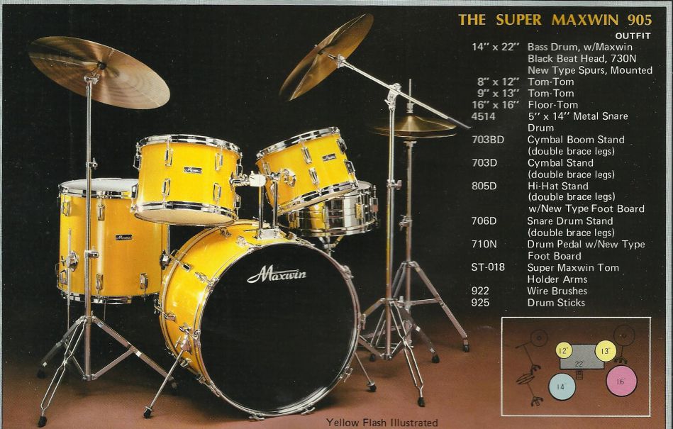 The "Maxwin" brand, by Pearl, arrived in the late 70's I believe. Here's a picture of some of the tom holders used for the Maxwin drums in the late 70's. It's obvious that Pearl wanted to use up their stock of late 60's and early 70's holders for these drums! By the 80's, Maxwin drums used different holders. I believe I have some pictures I can post as soon as I find them.