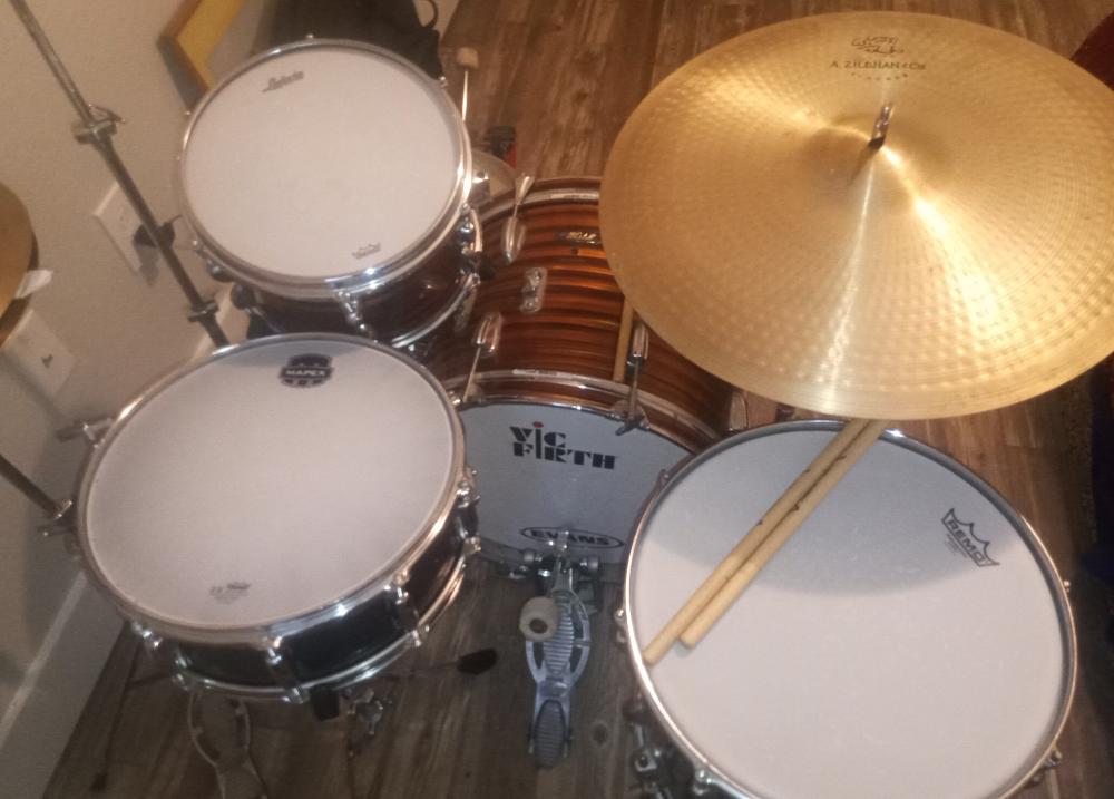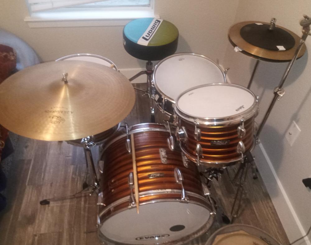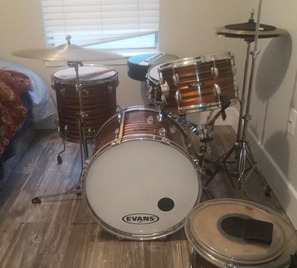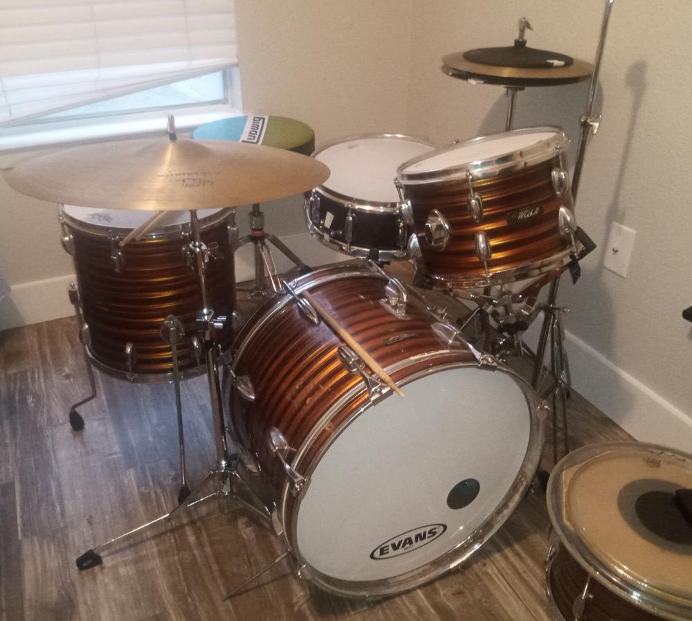 I'm just putting feelers out there to see if anyone would be interested in a trade. This is a Whitehall kit in a tiger eye finish. These were made by Pearl. They have re-rings and are well built. There's a few scuffs, but there are no extra holes.