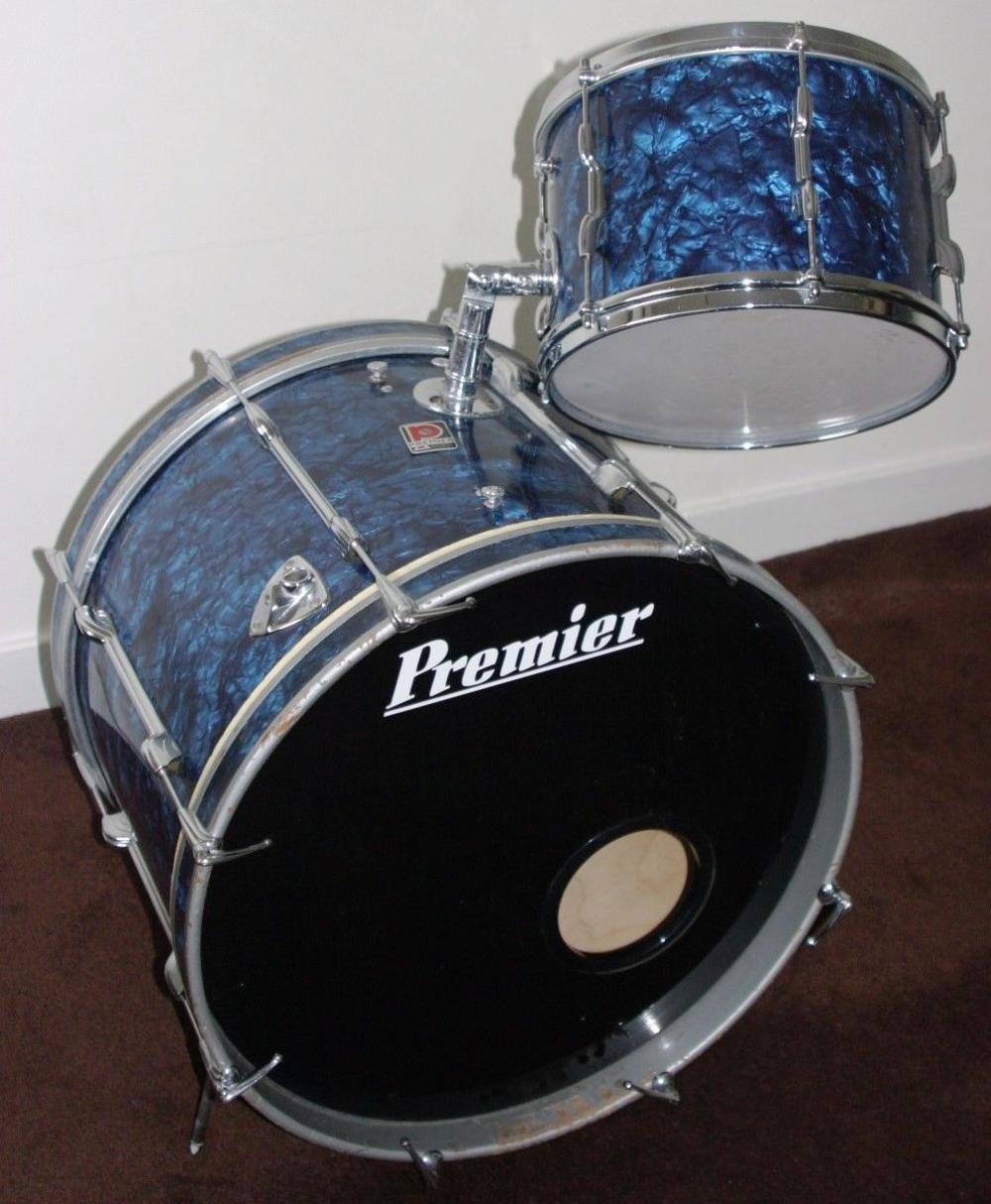 This is an early Premier kit ive just bought. I paid a very low price for it. The condition is pretty good but needs to come up to my standards. Once I get the drums I can show better plus more pics. Plus full info on condition. I have all the flush base stands to go with this kit so it will be as per catalogue once ive finished. It also comes with original sticks brushes and premier cases. Going down to London for the pick up. ....... Thanks for now sean.