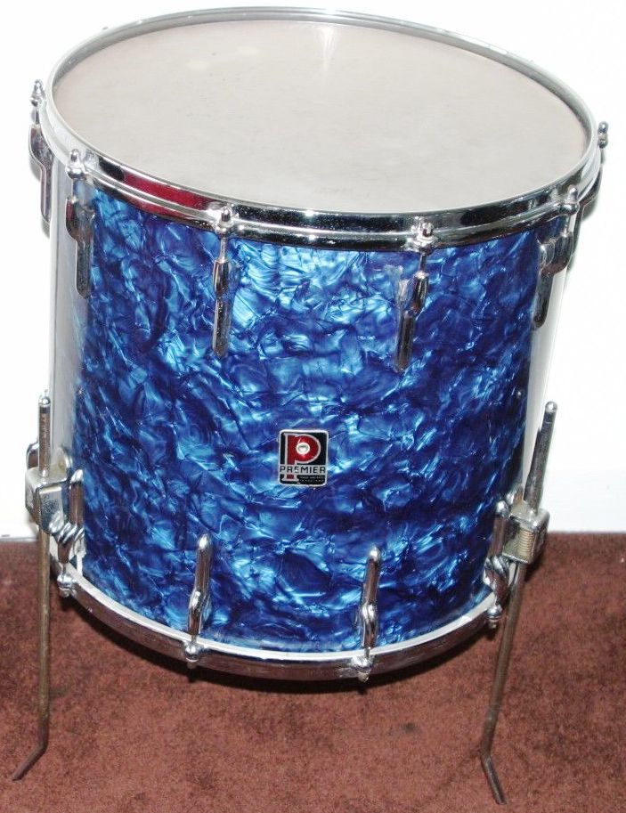 The floor tom is pre international 16". Probably the way the seller took pics. The snare is a premier 2000 but was wrapped to match professionally in London 1968. The kit was bought 1964 then this snare was added later. The original snare was sold separate which was the royal ace. A great bit of history. Plus have all the original 1960's flush base stands and zildjian cymbals. In the pics the stands etc etc are not original all cymbals and flush base are in a drum case. I must set this up its like ringos with the 18" crash ride and 20"crash ride and 14" hats. I also got all the premier drum cases with the kit. But wrong colour. A real piece of 1960's premier drum history. They will go on sale but I just cant let em go yet I love the sound. Even the heads apart from bass drum are original ever play.
