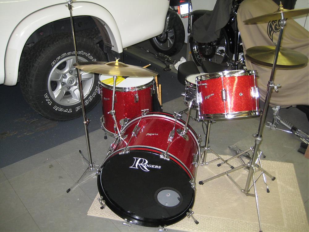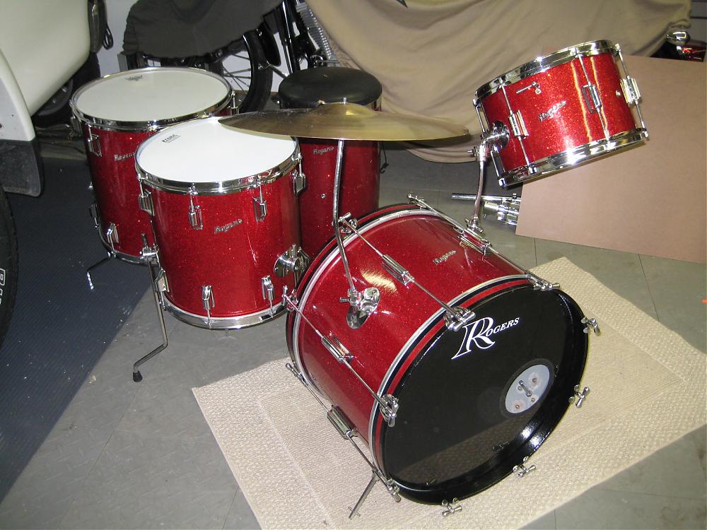 I picked these up recently and have been vigorously cleaning polishing and assembling. They are a 12" Tower Tom, a 20" Tower Bass Drum, 14" and 16" Holiday Floor Toms along with the Canister that I have to buff and polish yet. I have a Powertone Chrome snare to go with it along with the Swivomatic Hi Hat and Pedal and some Swivomatic Supreme Cymbal stands. It sure sounds good and tuned up quite nicely other than the muffler pad is rattling a little bit on the 16" which should be an easy fix.