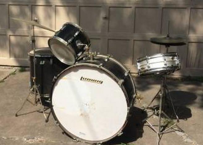 Looks like Ludwig drums and maybe some Rogers stands and tom mount. I see a Ludwig Acrolite snare too.
