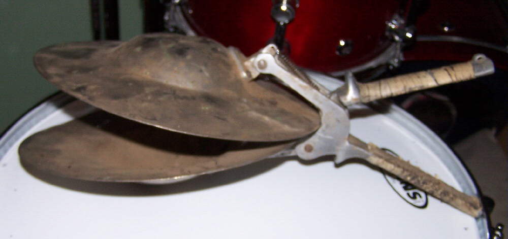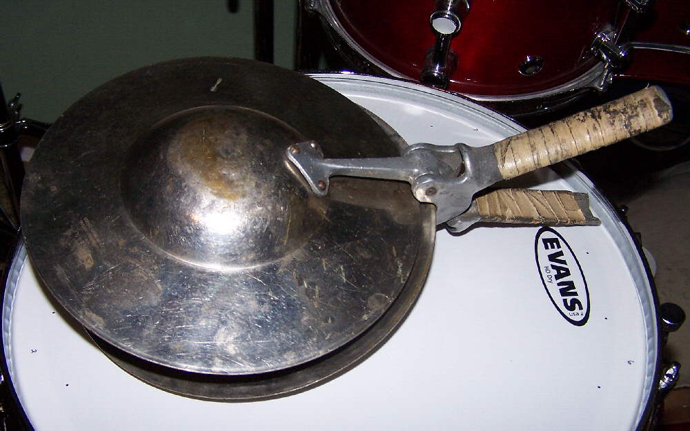 It was an early predecessor to the high hat. Those are probably 6-8 inch cymbals that sound kind of clunky. It's a really cool item though.