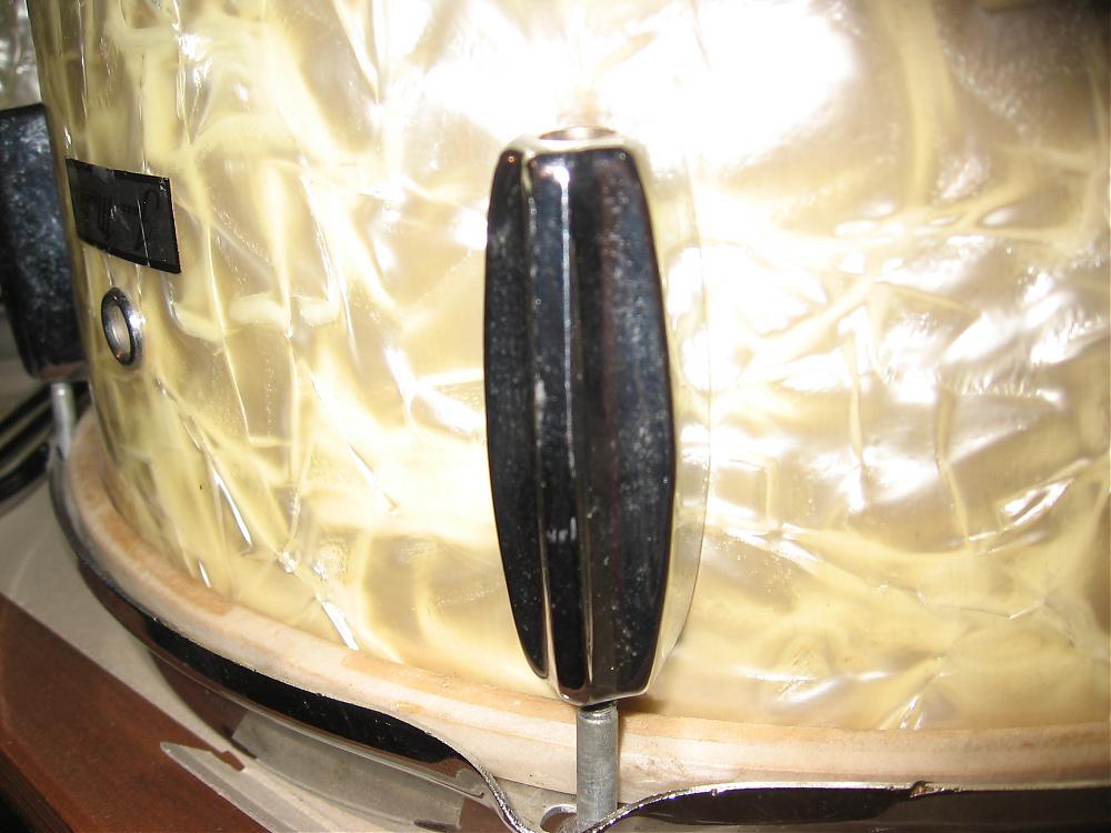 Just thought I'd post a pic of the Jazz Master snare lug. Looks to be exactly the same as the center lugs on Drumdreams' toms. At some point, I'd like to start a thread for the blue sparkle Star made center lug set I have, but I want to get the floor tom together first. It's just the 6 bottom t-rods that are holding it up. Getting them is apparently impossible... (If anyone has six 6 & 1/4" long metric (small thread) t-rods, let me know!!!)
