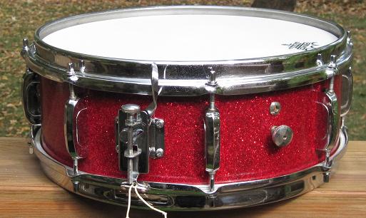 Nope, no name on the inside of the lugs. These lugs are quite heavy and it looks like they have a "heavy" coat of nickle on them. As far as the red snare goes, looking at the old catalogs this strainer type was used pre 65 models. In 65 the strainer looked like a zoomamatic copy (kinda)