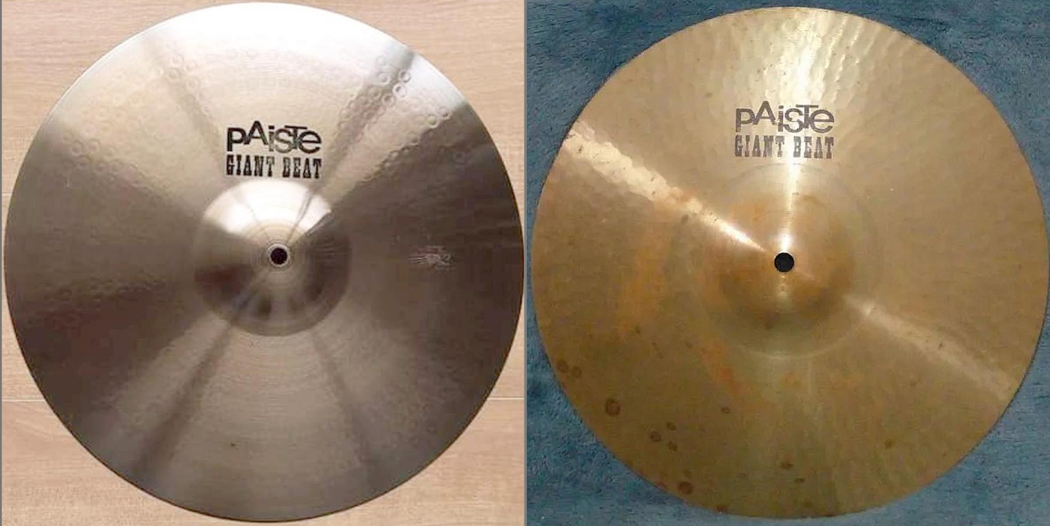 I got interested in bying a cymbal - Paiste Giant Beat 14 Hi-Hats Top, but have some doubts if it is a vintage one. I asked the owner if any stamps or a serial number other than the printed logo "PAISTE Giant Beat" (see the photos), but no answer so far. And it is difficult to see anything on the cymbal.