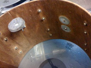 Can you suggest something for the hole on the top of the bass drum? My guess is it was used for a cymbal mount on the original kit. I would love to to get the original piece but I'm sure they are hard to find. If not can you suggest some kind of restoration/cover up? [COLOR="Red"]Try member Mikey777 for parts first. If he can't help, then we will go to back up plan no. 1[/COLOR]