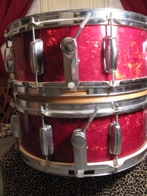 [COLOR=blue]Now that's what I'm talkin' 'bout!!![/COLOR] My son's are the same, except we have 2-12s. Are the shells 6 ply lauan, or the 3 ply? If the 3 ply, I can give you some serious insight on these shells, and the others as well. I just finished a 3 ply from the late 50s-early 60s and they are some of the coolest looking, and very sweet sounding drums. Low, thunderous...very nice tone.