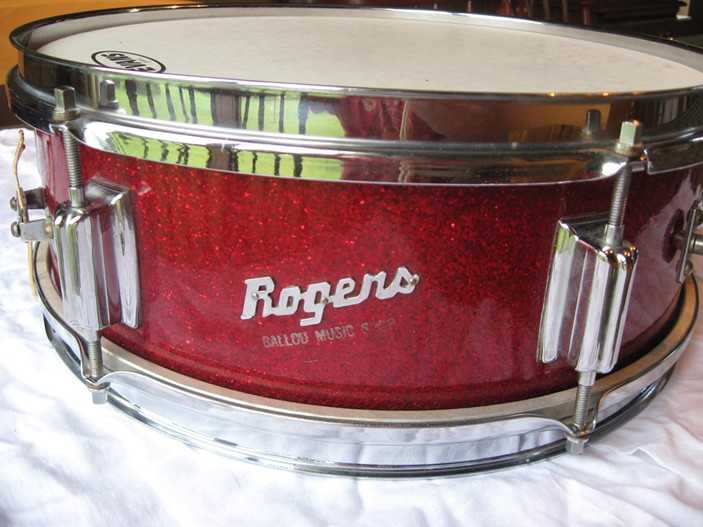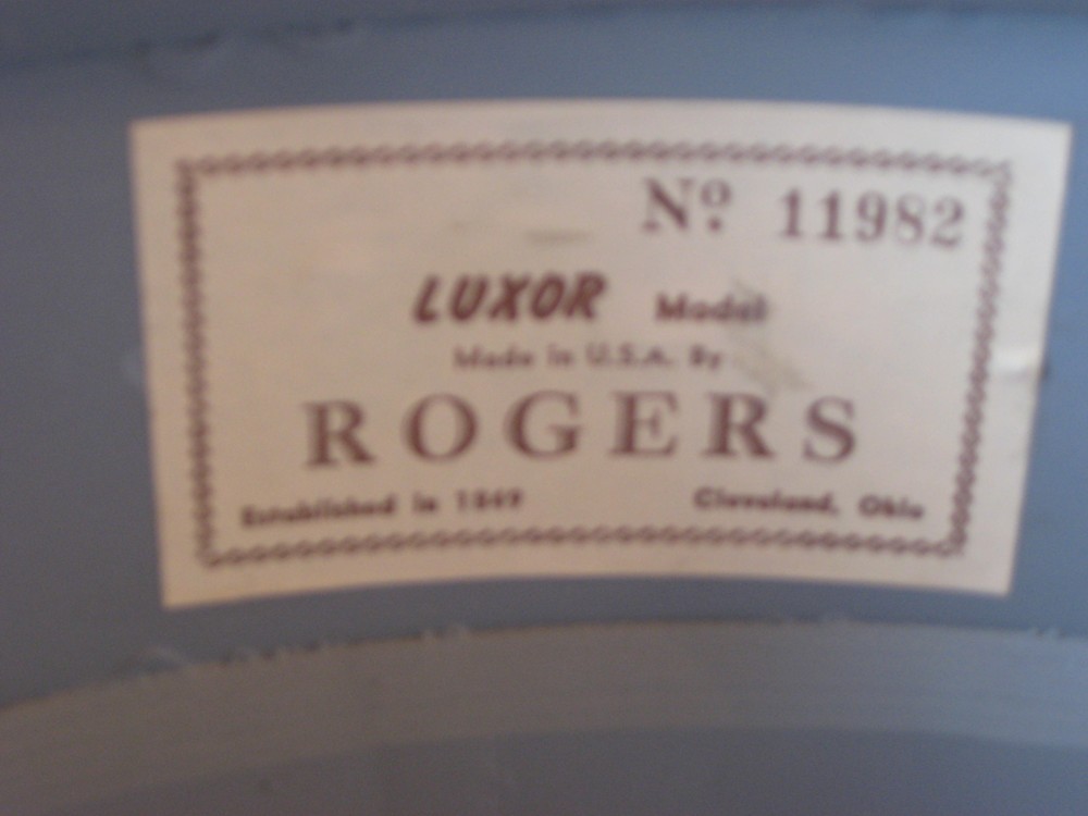 I have an early to mid 1960s Rogers Luxor Snare Drum. It is in good condition, it is a Red Sparkle finish. Its serial number is 11982, it was made in Cleveland, Ohio. It has no extra holes and has original Beavertail lugs, hardware, and snares; also, it has Rogers heads! The bottom one is still in decent condition, but the top one has a slight rip where it meets the rim. I have taken off the top head and replaced it with an Evans head, but the original head will be included. It is a standard 5x14 snare, I believe it is in the 1964 catalog. This drum is in great condition, it was given to me from my grandfather. I will consider any offers but please don't low ball me, I have done my research! I accept Paypal and I ship as soon as I receive the payment, also the buyer will pay for shipping. PM me for more details or more pictures.