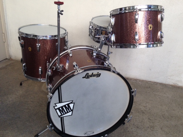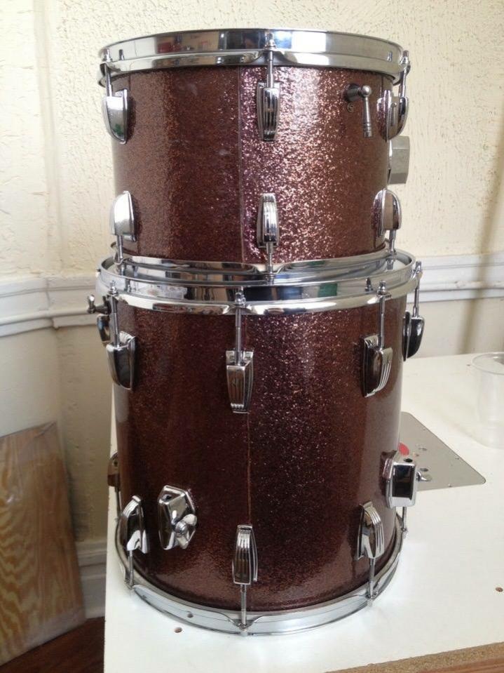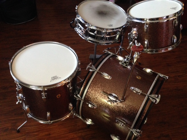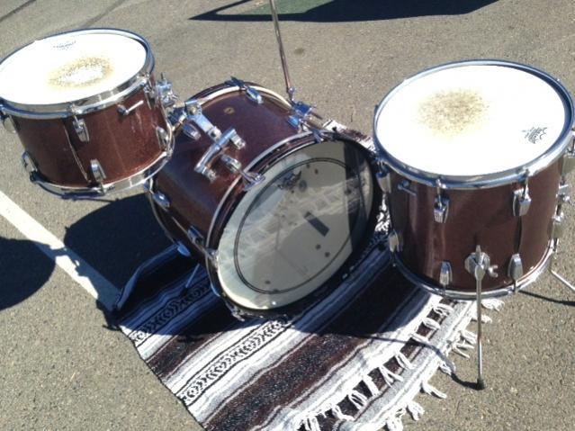 Thought I would share this treasure I was able to acquire here in SoCal. I bought this kit from a fellow drummer in town. I actually gave him 100 dollars more than what he was asking & I think you all know why. It's an ALMOST matched kit (BD & Tom dated May 26 1965, FT April 26 1965). A VERY nice players kit with much potential as it's seen many gigs already & that's exactly what my intention is. These drums had some issues that were beyond what I could do at home: seam lift. But I was not going to let just anyone repair this treasure I now owned. So I called up the one person I know with the knowledge, skill & passion for these vintage drums: Uli Salazar of The Damen Drum Company in Chicago. Uli not only fixed the seam lift issues, but brought the tom & FT back to original condition. They look amazing. Uli treats your drums like they are his drums & that speaks volumes to me. He has the passion as we all do. I was able to complete the bass drum myself with lots of TCL. Words cannot express my gratitide to Uli for I now own a rare kit that has been crossed off the bucket list and is once again like new. One day I'll have my own shop set up (I live in a condo in the city of SD) so if you are in my shoes, I highly recommend Uli's work. Cheers!