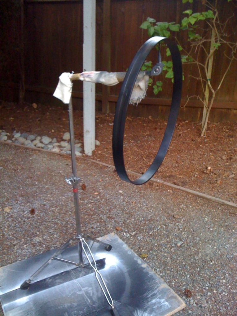 I will post photos of my most recent finished hoops later when I get home. For now, I just have one photo I took during one of the early black lacquer coats (I think). I wanted to show this pic because: Remember those oh-so-crapola Ludwig stands from the 90s, hmm? Well, everything seems to have its function...