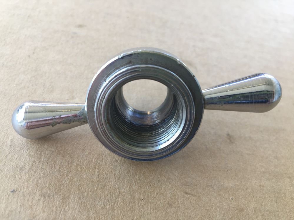 I was thinking about getting a few aftermarket, standard wing nuts to replace my cast, cracked collet noses (even if it doesn't look "factory"), but it looks like they might be an odd thread size? Even if it was a 3/4"-16 wing nut, I don't know anyone that makes one, according to Google searches (everything I'm finding is for coarse thread 3/4" - 10 TPI).