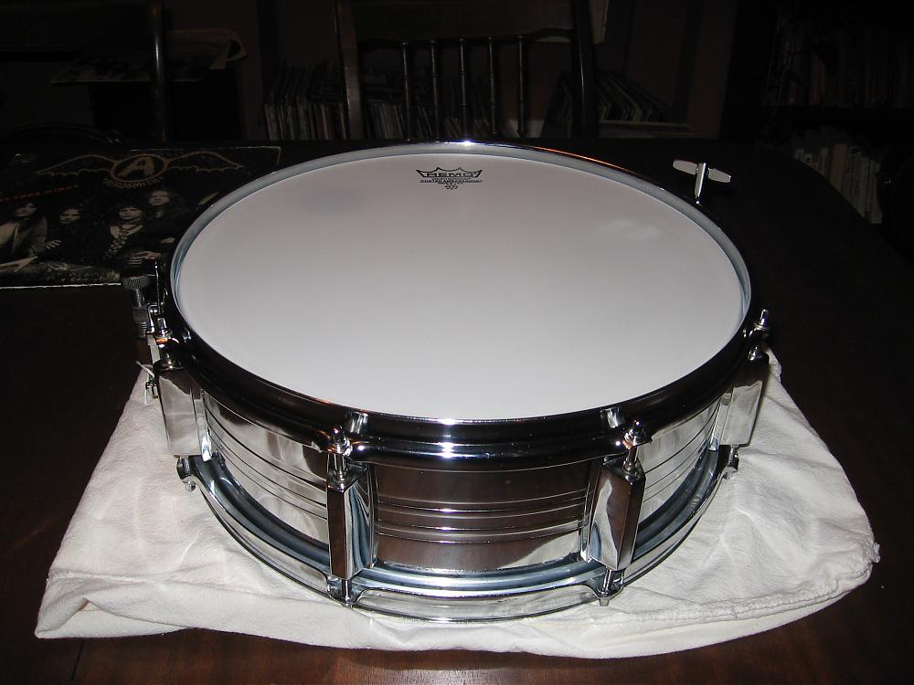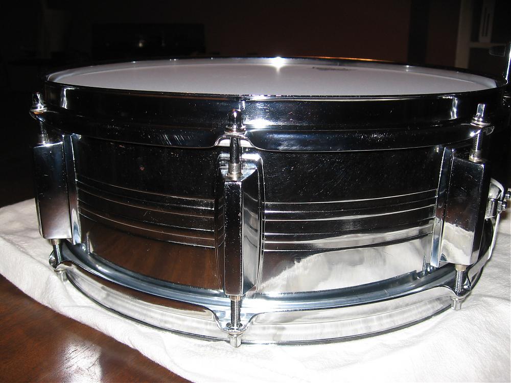 Now, I understand if someone doesn't want to take steel wool to an 80 year old drum. However, for most drums, I've found that 0000 S.W. works fine and doesn't cause any noticable scratching to the hoop. I have used S.W. to clean up a chrome shell, and no longer do, but I think it is fine for hoops. When you think about it, hoops suffer a lot more abuse when playing than shells, so the shell, if chrome, is really the part of the drum that needs to be pristine. It isn't like you look at a drum and say, 'well that hoop is a little scratched up, so I'm gonna pass.' And 99% of people mostly notice the shell and lugs when looking at a drum. I'm not saying dont do the best you can with the hoop, but I dont think it has to be the same level of perfect that we would like our shells and lugs to be. And that is why I think it is ok to use S.W. on hoops. After the steel wool, I go over the hoop with the metal polish or even WD-40 to protect against future rust.