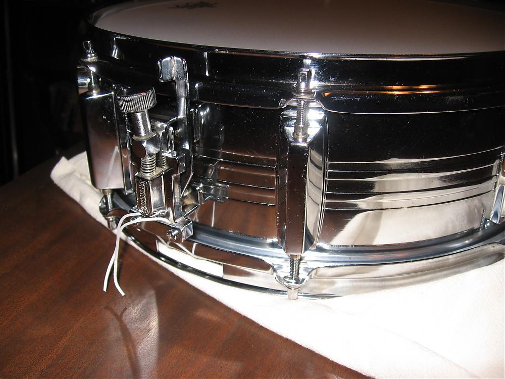 Then I clean both the lugs and shell with metal polish. It takes much, much longer than steel wool, but obviously it wont scratch. I did have one cheap Taiwanese snare that I cleaned up with S.W. that did noticeably scratch to visibly denigrate the chrome. Thankfully it was a cheap, worth nothing snare, but I learned a valuable lesson on that restoration.
