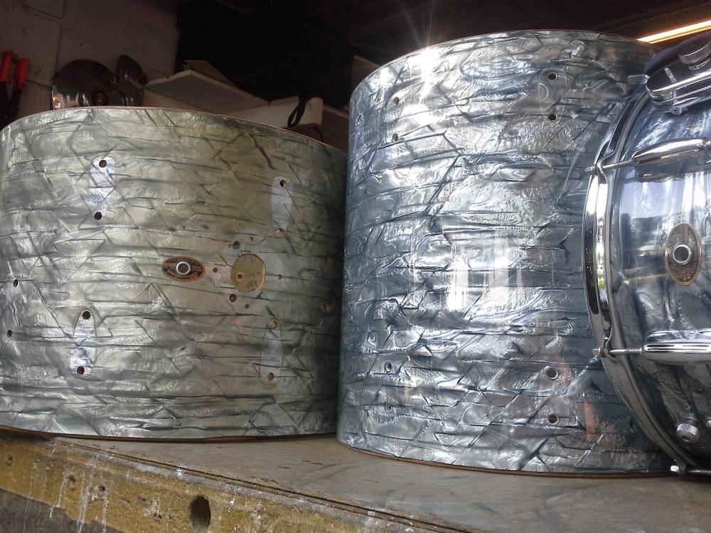 Dude, you are obsessing over the wrap fade. They look cool as is so I'd just get 'em back together and start enjoying that great vintage Luddy sound. They're never going to be collector grade and if you REALLY wanted the original color back I'm afraid it would involve chemicals, etc. and then you never know what the outcome might be. Could be better or could be worse. There is a guy on another forum that unyellowed a WMP kit with great success. Then the wrap kind of looked cloudy so he had to buff it with some wax I think. Anyhow, I was wondering if it would work for SBP? But if I effed it up I would be extremely ****ed that I just didn't leave well enough alone. Mine are almost ready to go. My hoops need repainting and I need to replace a few drum heads and I'm in businesss.